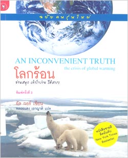 หนังสือเล่มนี้เป็นหนังสือขายดีติดอันดับ เป็นหนังสือที่แปลมาจาก An inconvenient truth เป็นการนำความรู้ทางวิทยาศาสตร์เกี่ยวกับสาเหตุ ผลกระทบและประเด็นทางการเมือง ทั้งในสหรัฐอเมริกาและการเมืองระหว่างประเทศเกี่ยวกับ “โลกร้อน” มาย่อยและนำเสนอ ในรูปแบบที่คนทั่วไปที่ไม่จำเป็นต้องมีความรู้ทางวิทยาศาสตร์ที่ลึกซึ้งก็สามารถเข้าใจได้โดยง่าย อีกสิ่งหนึ่งที่น่าสนใจในหนังสือเล่มนี้ก็คือ การเรียกร้องให้ทุกคนช่วยกันชะลอปัญหาโลกร้อน โดยการลดการปลอดปล่อยก๊าซเรือนกระจกต่างๆ ออกสู่บรรยากาศ นอกเหนือจากการเปลี่ยนไปใช้ เทคโนโลยีใหม่ๆ ที่เป็นมิตรกับบรรยากาศ ผู้เขียนได้ชักชวนให้เราปรับเปลี่ยนพฤติกรรมการบริโภค และการใช้ชีวิตที่ลดความฟุ่มเฟือยที่ไม่จำเป็น
