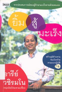 หนังสือ “ยิ้มสู้มะเร็ง” เล่มนี้กล่าวถึงความเครียดที่ทำให้เกิดโรค เพราะเป็นตัวบั่นทอน ทำให้ภูมิต้านทานในร่างกายเราต่ำลง โดยกล่าวถึงองค์รวมของมนุษย์ กายจิตต์และลมหายใจ อาหารที่แท้จริงของมนุษย์ การสร้างภูมิต้านทานเพื่อชีวิตยืนยาวด้วยหลัก 7 อ. อันได้แก่ 1. อิทธิบาท 4 2. อารมณ์ 3. อากาศ 4. อาหาร 5. ออกกำลังกาย 6. เอนกายและคลายเครียด 7. เอาพิษออกจากร่างกาย การกินอาหารสามประเภทอันได้แก่ คาร์โบไฮเดรต โปรตีนและไขมันให้ถูกต้องและสมดุลกัน การชนะมะเร็งแบบแพทย์องค์รวม ข้อแนะนำการกินอาหารบางอย่างสำหรับคนเป็นมะเร็ง อาหารที่คนเป็นมะเร็งไม่ควรกิน การคืนสู่วิถีธรรมชาติ และภาคผนวก มีประสบการณ์ของผู้ป่วยที่รักษาตัวเองด้วยหลัก 7 อ.