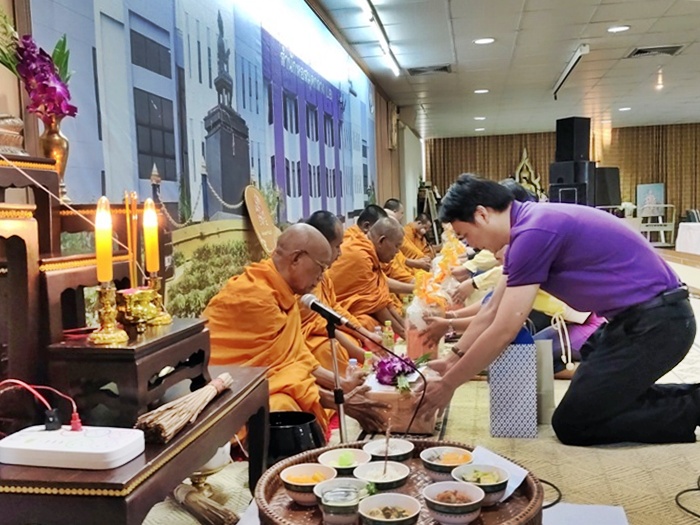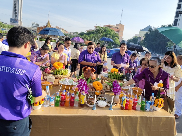 ภาพพิธีสงฆ์ ผู้อำนวยการสำนักหอสมุดกลางนำถวายปัจจัยไทยธรรมและถวายภัตตาหารเพล