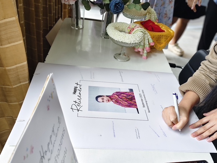 ภาพบุคลากรสำนักหอสมุดกลาง ร่วมลงชื่อแสดงความยินดีในวันเกษียณอายุราชการ