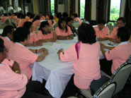 วันที่สองของการสัมมนา ช่วงเช้าวันที่ 21 กรกฎาคม 2549 บุคลากรสำนักหอสมุดกลาง ได้ประชุมกลุ่มย่อย ซึ่งจัดกลุ่มตามฝ่ายและลักษณะงานที่เกี่ยวข้องกัน โดยใช้เทคนิคการระดมสมอง(Brainstorming)หาข้อตกลงร่วมกัน ในการกำหนด PDCA ของปัญหาฝ่ายหรืองานที่ตนเองรับผิดชอบอยู่ และในช่วงบ่ายได้มีการส่งตัวแทนออกไป Present ผลงานของกลุ่มดังภาพ