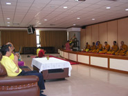 ภาพรองศาสตราจารย์ทศพร คล้ายอุดม ผู้อำนวยการ สำนักหอสมุดกลาง รวมทั้งคณะผู้บริหาร และบุคลากรสำนัก ฯ พร้อมเพรียงกันทำบุญเลี้ยงภัตตาหารเพล เนื่องในวันครบรอบ 35 ปี สถาปนาสำนักหอสมุดกลาง มหาวิทยาลัยรามคำแหง | ||