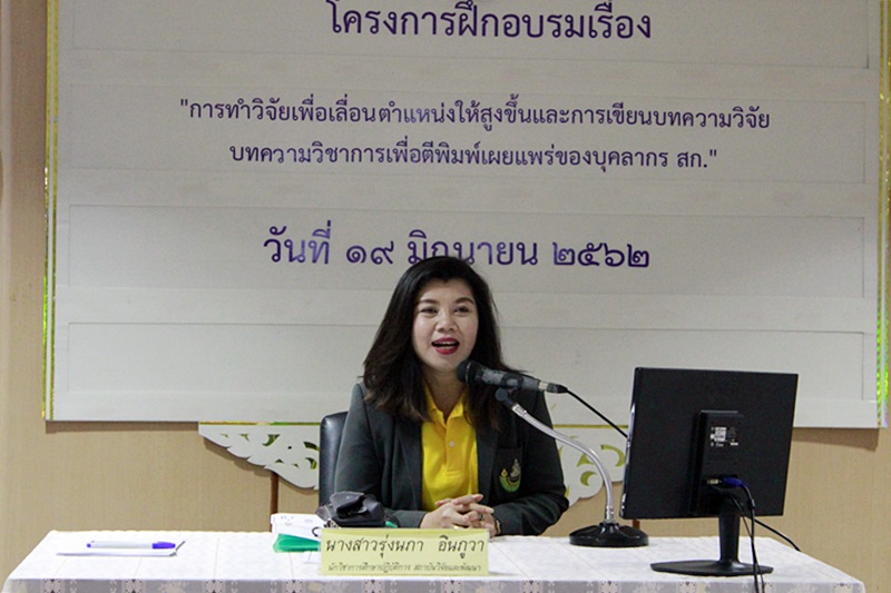 - บรรยายโดย นางสาวรุ่งนภา อินภูวา นักวิชาการศึกษาปฏิบัติการ สถาบันวิจัยและพัฒนา มหาวิทยาลัยรามคำแหง
