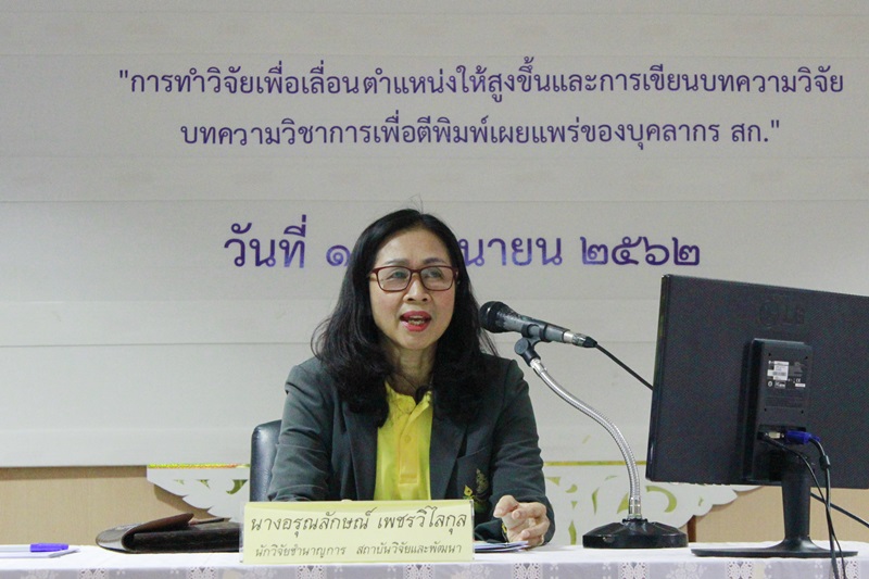 - บรรยายโดย นางอรุณลักษณ์ เพชรวิไล นักวิจัยชำนาญการ สถาบันวิจัยและพัฒนา มหาวิทยาลัยรามคำแหง