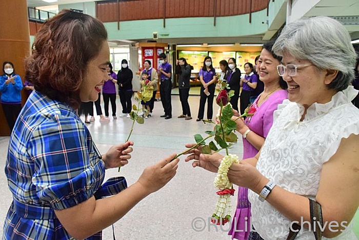 29 กันยายน 2566 เวลา 15.00 น. นางสาวนีลนารา วงษ์เกิด กรรมการสภามหาวิทยาลัยรามคำแหง รักษาราชการแทนผู้อำนวยการสำนักหอสมุดกลาง นำบุคลากรสำนักหอสมุดกลาง ทำพิธี “มอบดอกไม้ส่งพี่กลับบ้าน” วันสุดท้ายของการปฏิบัติราชการ แก่ผู้เกษียณอายุราชการทั้ง 2 คน คือ นางศุภมาศ กิจจาการ และนางสาวมาลี ภู่อร่าม บรรยากาศเต็มไปด้วย ความรักและความผูกพัน