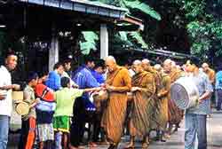 การเคลื่อนขบวนจะเป็นไปอย่างช้า ๆ ให้พระภิกษุรับบาตร |