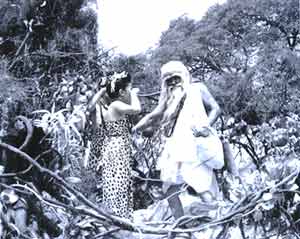 ชูชกหลอกล่ออจุตฤๅษีให้บอกทางสู่อาศรมพระเวสสันดรแล้วก็รอนแรมเดินไพรไปหา