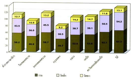 รองลงมาคือภาคตะวันออกเฉียงเหนือ