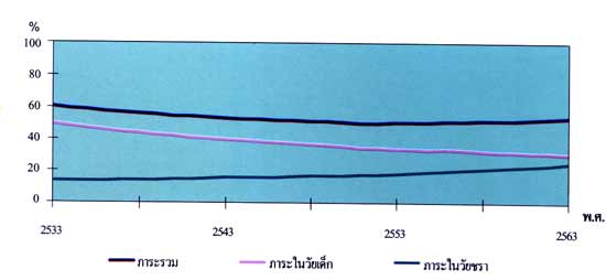 ภาระในวัยเด็กจึงลดลง ในขณะที่การเป็นภาระในวัยชรามีอัตราเพิ่มขึ้น