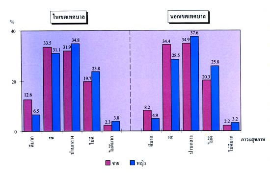 โดยรวมแล้วส่วนใหญ่มีสุขภาพระดับปานกลาง(ร้อยละ