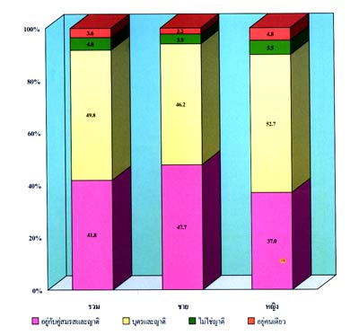 และสัดส่วนการอยู่กับคู่สมรสนั้นเพศชายสูงกว่าหญิง 2.โครงสร้างครัวเรือน