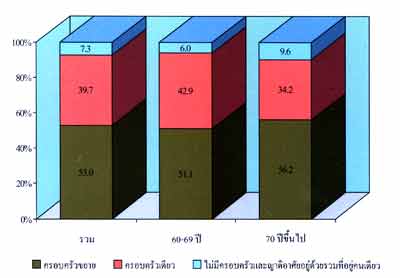โดยภาพรวมแล้วผู้สูงอายุส่วนใหญ่อยู่ในครอบครัวขยาย