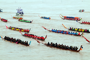 เข้าถึงช่วงการแข่งขัน เรือแห่อัญเชิญพระบรมฉายาลักษณ์สมเด็จพระเทพรัตนราชสุดาฯ สยามบรมราชกุมารี พร้อมทั้งพิธีอัญเชิญถ้วยพระราชทานเครื่องเกียรติยศนำหน้าขบวน คลอเคล้าด้วยเสียงโห่ร้องของเหล่าฝีพายที่ดังสนั่นก้องท้องน้ำโขง นับเป็นช่วงเวลาอันศักดิ์สิทธิ์ ที่ทำให้สายตาทุกคู่ดั่งถูกมนต์สะกดให้จับจ้องอยู่ที่พิธีกรรมที่เกิดจากความร่วมใจของชาวมุกดาหาร ที่ยังคงสานต่องานประเพณีอันทรงคุณค่านี้สืบไป