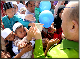 การเฉลิมฉลองวันตรุษอีดิลฟิฎริมีการทำบุญโดยการแจกงินให้กับเด็กๆ และเด็กกำพร้า
