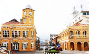 ในยุคที่กิจการเหมืองแร่รุ่งเรืองโดยชาวโปรตุเกสซึ่งเป็นชนชาติตะวันตกชาติแรกที่เข้ามาทำการค้า ได้นำเอาสถาปัตยกรรมของตนมาเผยแพร่ จากนั้นพ่อค้าชาวจีนจึงดัดแปลงตามรูปแบบ สถาปัตยกรรมของตนจนเกิดเป็นรูปแบบสถาปัตยกรรม ผสมผสานระหว่างโลกตะวันออกกับโลกตะวันตกที่กลมกลืน อีกทั้งบรรดาตึกเก่าเหล่านี้ไม่ใช่เป็นเพียงตึกเก่าที่ปราศจากชีวิต เพราะชาวภูเก็ตเชื้อสายจีนยังคงใช้เป็นที่อยู่อาศัยจริงๆ บ้างเปิดเป็นร้านอาหาร บ้างก็เปิดเป็นที่พัก หรือร้านจำหน่ายสินค้าหลากหลาย และอาคารเด่นๆ ที่ไม่ควรพลาดชมอีกหลากหลาย เช่น หอนาฬิกาพรหมเทพ ตั้งโดดเด่นอยู่ตรงหัวมุมถนนพังงา บ้านพระพิไสย พิพิธภัณฑ์ไทยหัว บ้านชินประชา บ้านหลวงอำนาจ