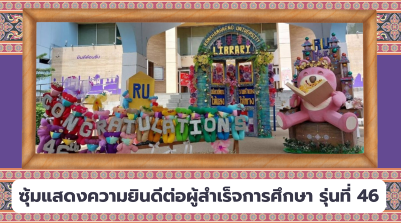 ซุ้มแสดงความยินดีต่อผู้สำเร็จการศึกษา ประจำปีการศึกษา 2565-2566 รุ่นที่ 49 พิธีพระราชทานปริญญาบัตรจัดขึ้น ณ อาคารหอประชุมพ่อขุนรามคำแหง มหาวิทยาลัยรามคำแหง (หัวหมาก) รับจริง วันที่ 12 – 14 กุมภาพันธ์ 2568 รวม 3 วัน