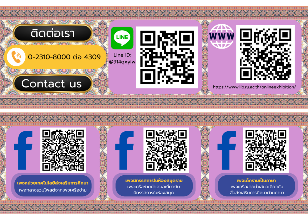 นักศึกษาที่สนใจกิจกรรมทักษะพัฒนารูปแบบเรียนรู้ด้วยตนเอง (Self-Service Workshop) สามารถเข้าร่วมได้ที่ ห้องจัดแสดงนิทรรศการ ชั้น 4 อาคาร 3 สำนักหอสมุดกลาง มหาวิทยาลัยรามคำแหง (หัวหมาก) วันจันทร์ – วันศุกร์ เวลา 8.30 – 16.30 น. เว้นวันเสาร์-วันอาทิตย์ และ วันหยุกนักขัตฤกษ์