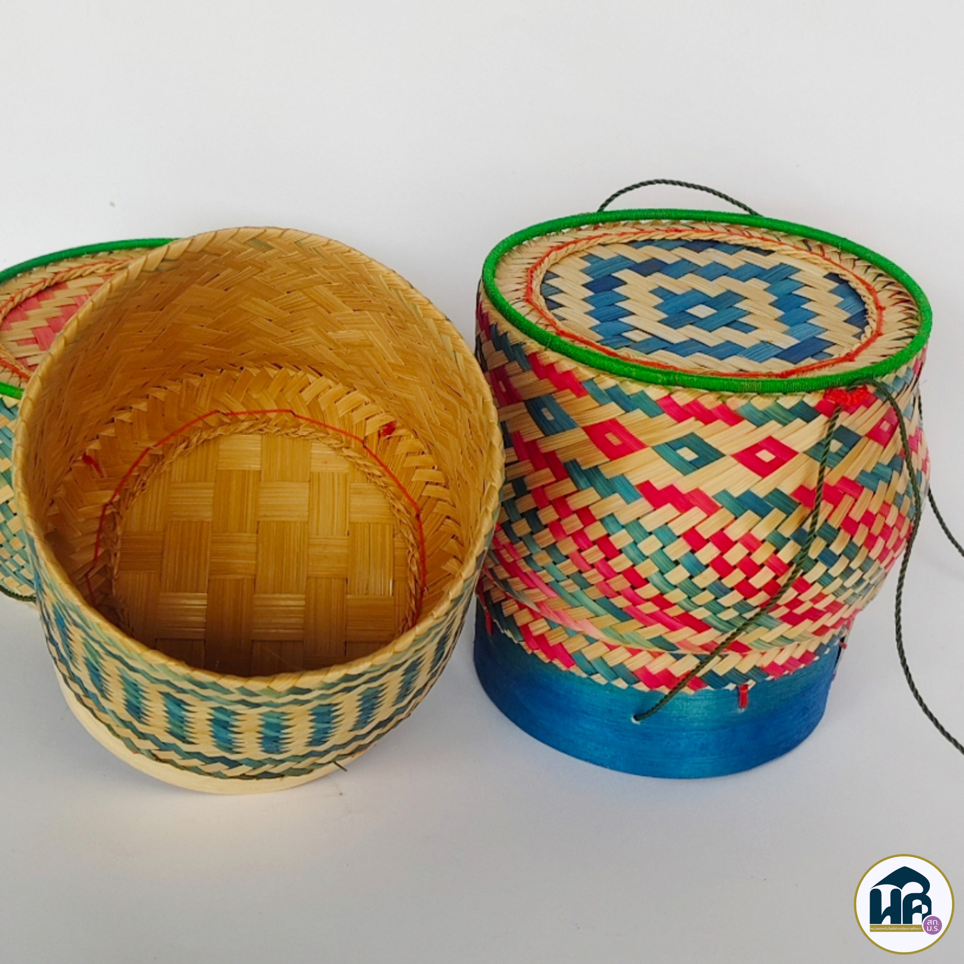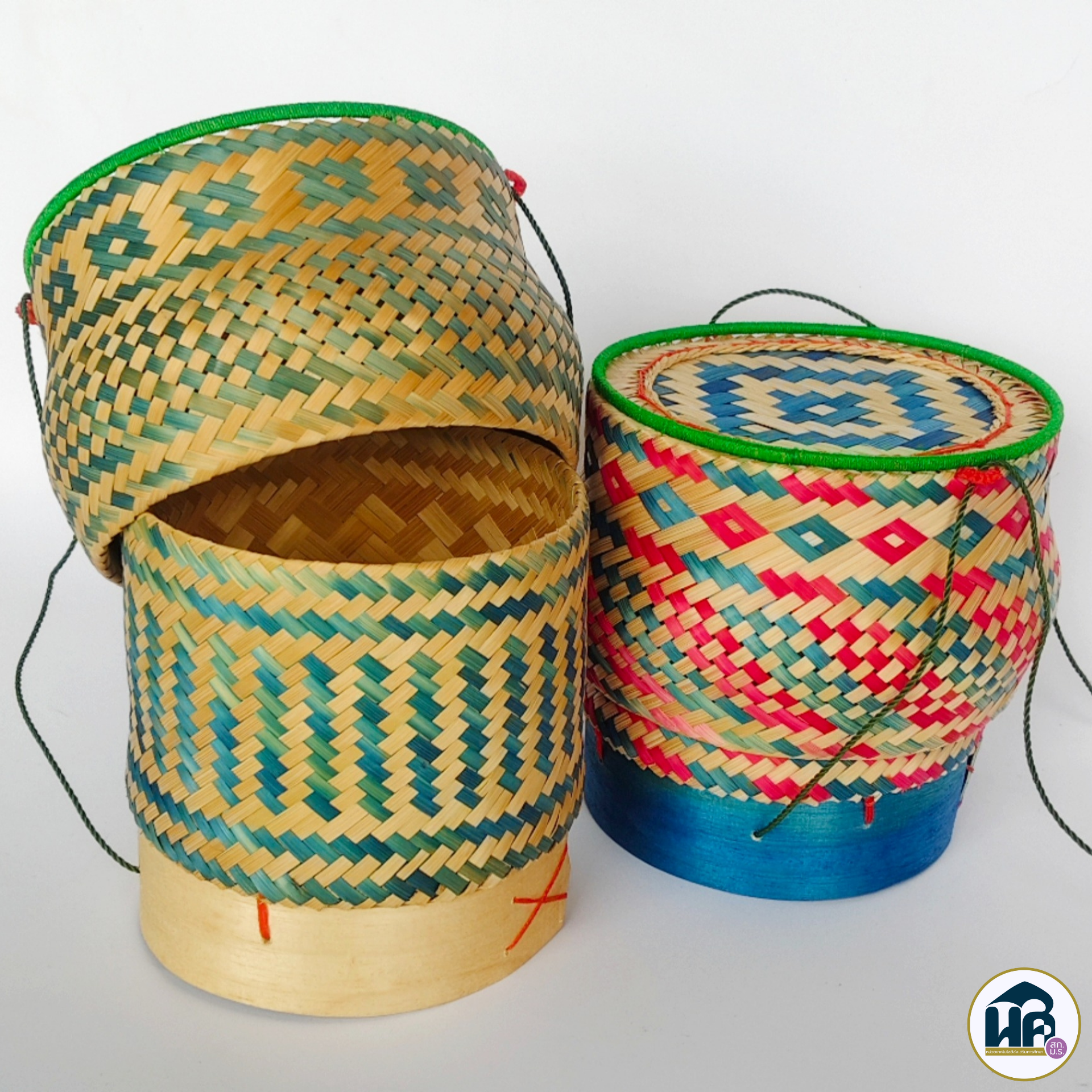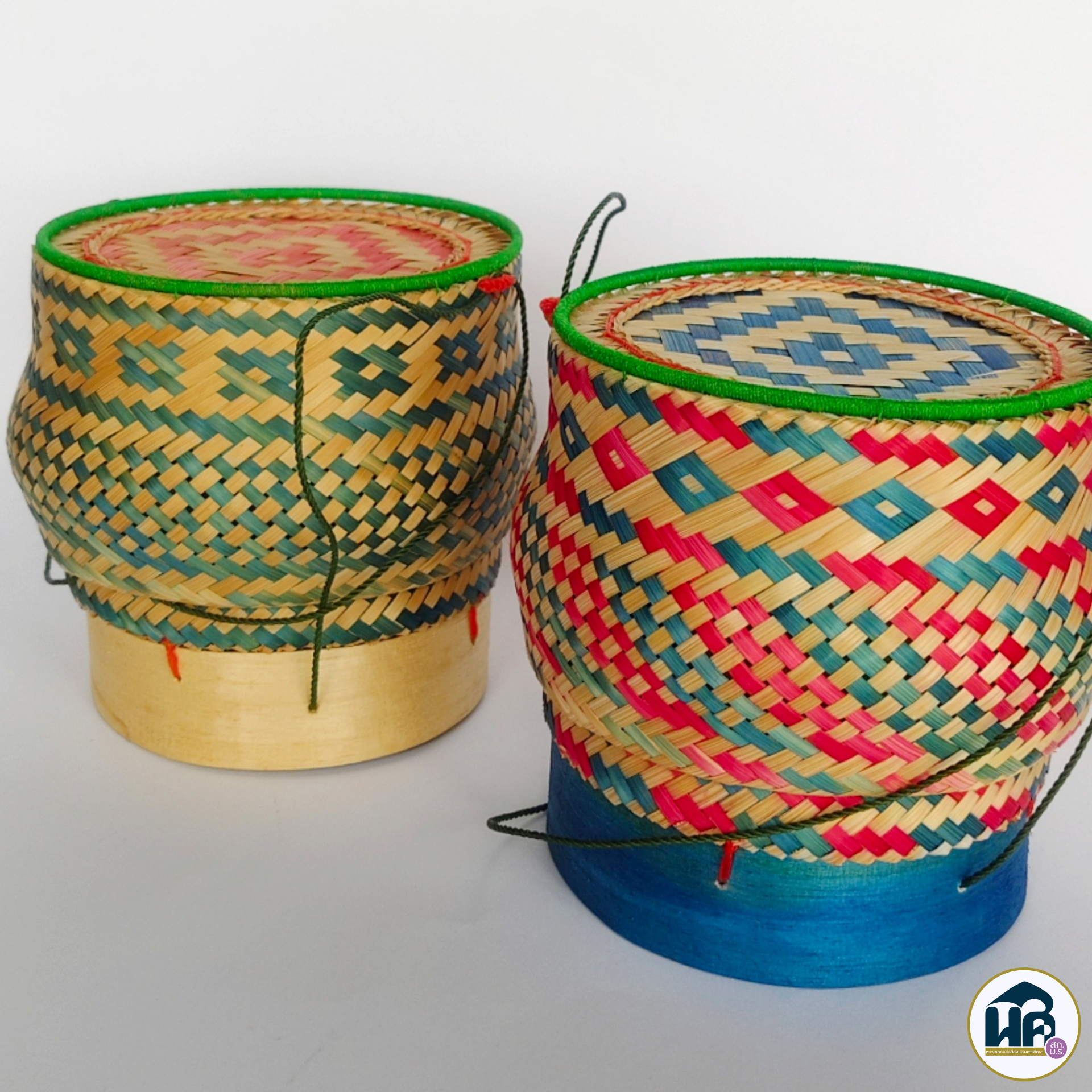 - กระติบดอก หรือ กระติบสอดสี: คือกระติบที่เน้นความสวยงาม สานด้วยไม้ไผ่เฮี้ยะที่ย้อมสี เช่น สีกรมท่า เป็นต้น สลับกับตอกสีธรรมชาติ (วิบูลย์ ลี้สุวรรณ, 2553, น. 54) ซึ่งสอดคล้องกับแนวคิดการพัฒนาลวดลายและสีสันที่กล่าวไว้ข้างต้น