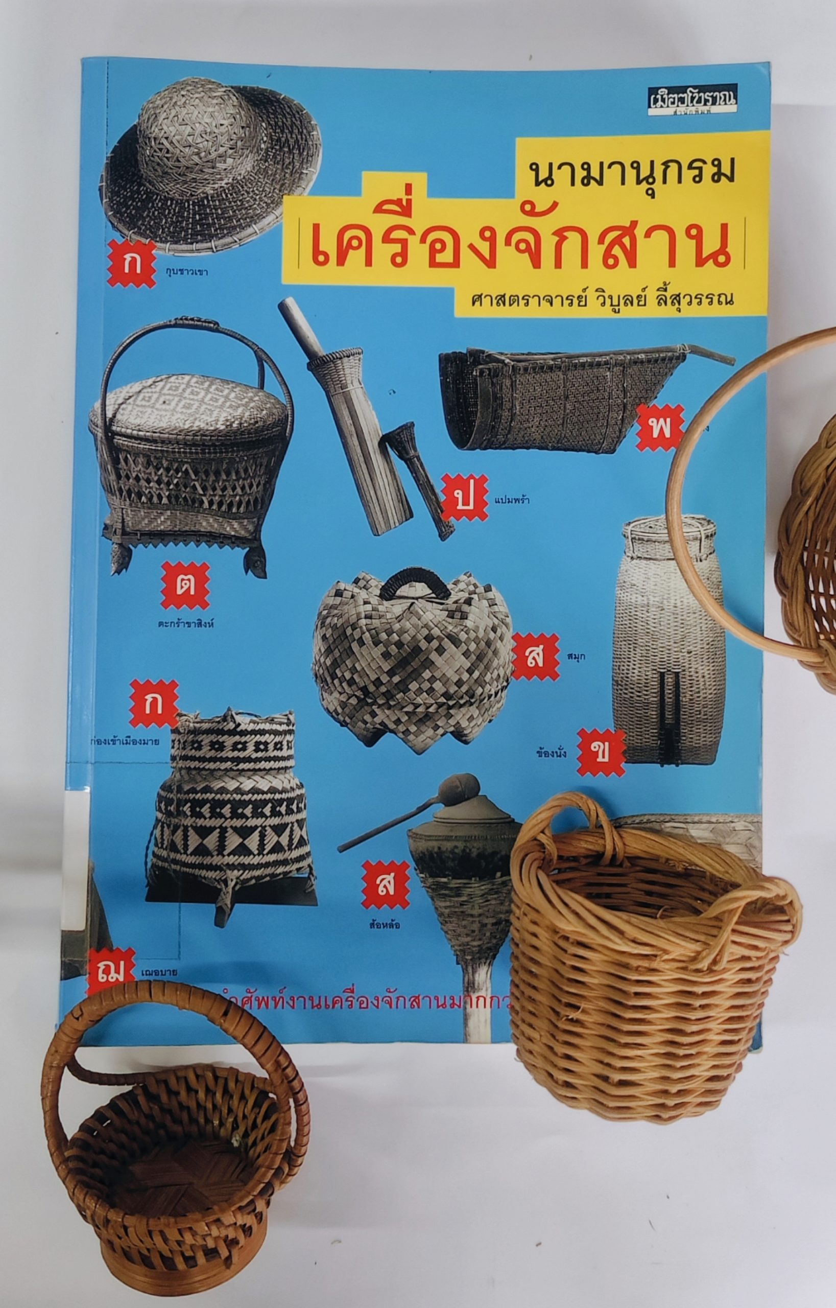 หมายเหตุ. จากปกนอกของ นามานุกรมเครื่องจักสาน, โดย วิบูลย์ ลี้สุวรรณ, 2553, เมืองโบราณ.
