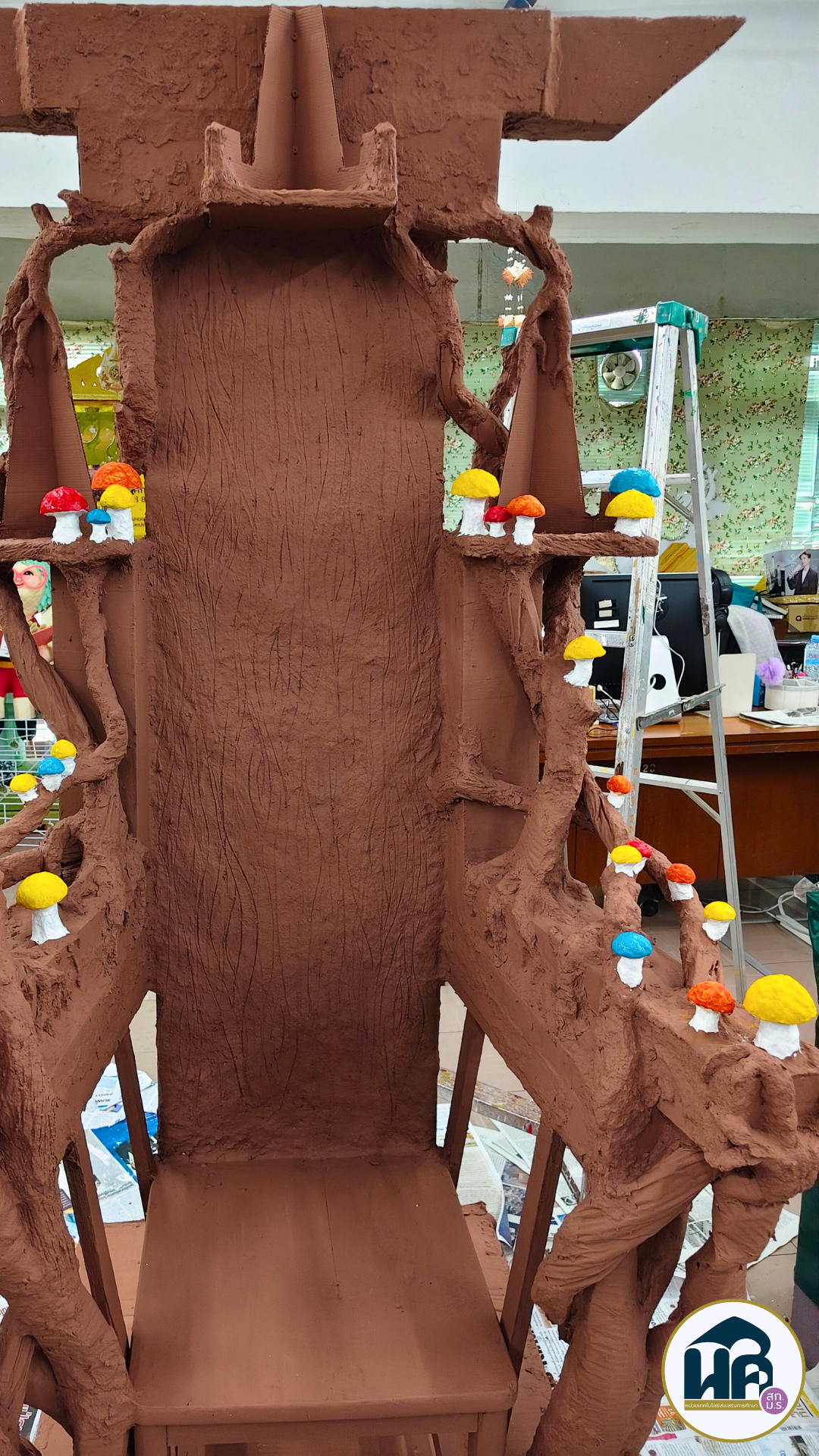 2. บัลลังก์เก้าอี้แห่งความสำเร็จ (The Throne of Success) เก้าอี้ที่ตั้งตระหง่านอยู่ตรงกลางซุ้ม ถูกออกแบบมาให้เป็นเสมือน “บัลลังก์” เพื่อยกย่องบัณฑิตผู้มีความพากเพียร เป็นพื้นที่แห่งเกียรติยศที่รอให้ผู้ที่ประสบความสำเร็จมาประทับรอยยิ้มและความภาคภูมิใจ