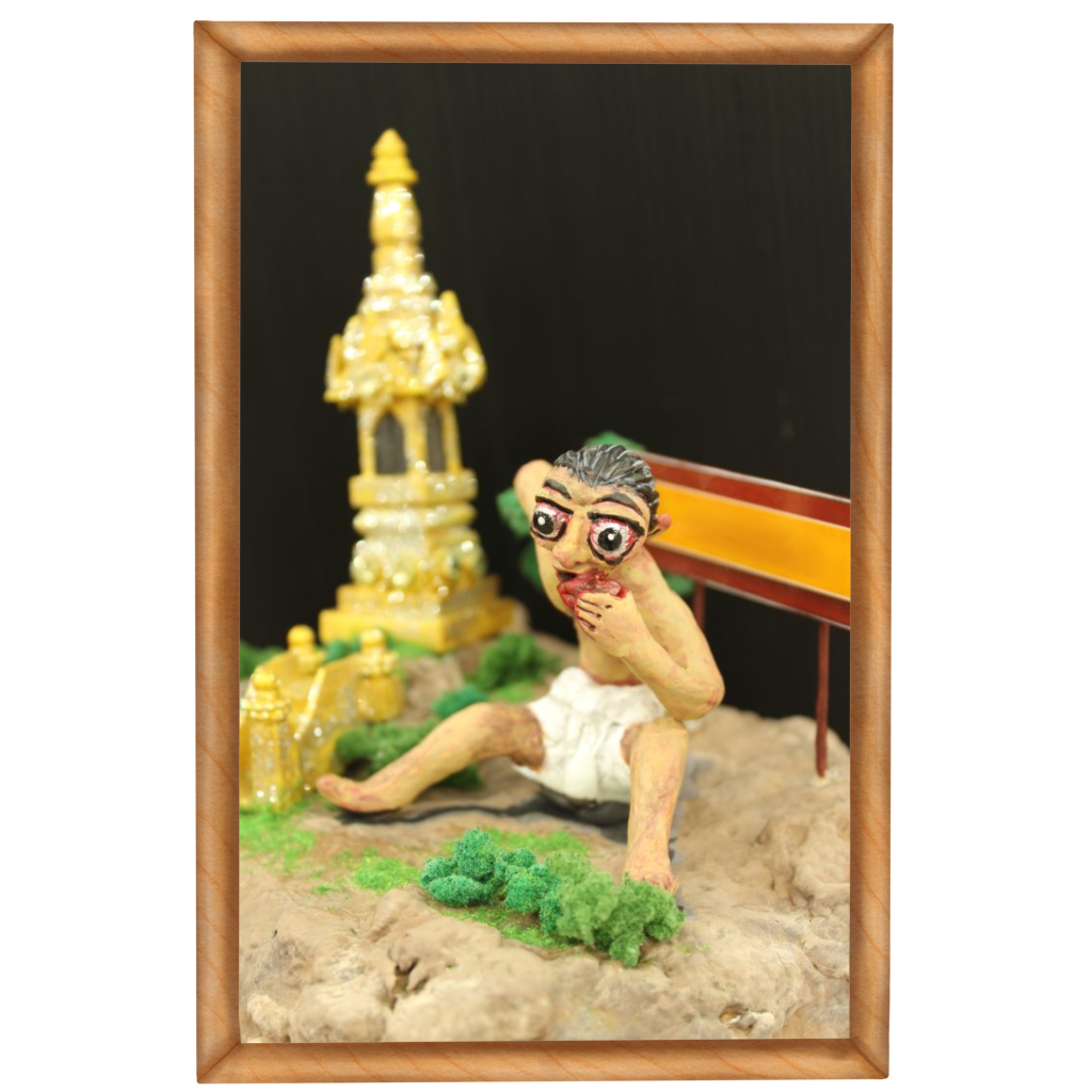 ซึ่งหุ่นจำลองเปรตมีวิมานชิ้นนี้ ผลิตขึ้นมาด้วยวัสดุเหลือใช้ในอัตราร้อยละ 85 เพื่อเป็นการลดปริมาณขยะ อนุรักษ์สิ่งแวดล้อม และสามารถประหยัดงบประมาณได้ ด้วยวิธี Upcycle ดำเนินการออกแบบหุ่นจำลองโดยนายกฤษดา เรืองสถาน นักวิชาการโสตทัศนศึกษาชำนาญการ ซึ่งนำศิลปะไทยเป็นแนวทางหลักในการออกแบบ เนื่องจากเป็นวรรณคดีไทย โดยมีการปรับประยุกต์รูปแบบการ์ตูนเข้าไปในชิ้นงานด้วย เพื่อให้เกิดการเข้าถึงและเข้าใจที่ง่ายมากยิ่งขึ้นได้ในกลุ่มผู้เรียน ซึ่งจากสถิติการเข้าใช้บริการกลุ่มผู้เรียนมีช่วงอายุอยู่ระหว่าง 18 – 25 ปี โดยประมาณ อีกทั้งเพื่อลดทอนความน่ากลัวจากเนื้อหาให้ดูน่าสนใจดึงดูดการอยากเรียนรู้ที่มากขึ้น ตามที่แสดงในภาพ