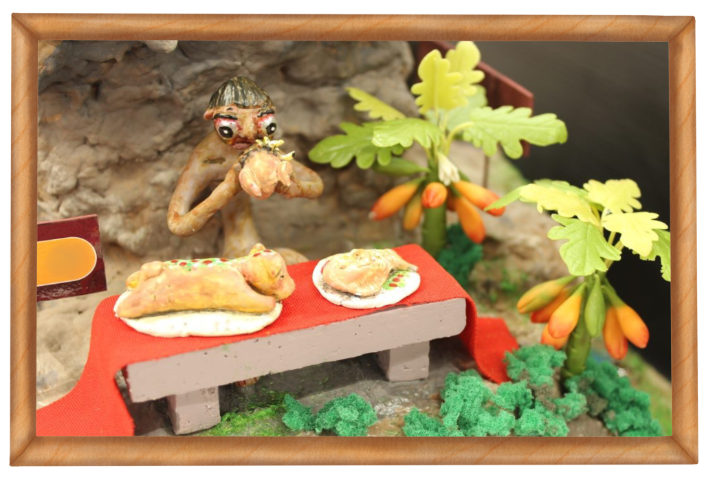 ซึ่งหุ่นจำลองเปรตไม่ให้ทานชิ้นนี้ ผลิตขึ้นมาด้วยวัสดุเหลือใช้ในอัตราร้อยละ 85 เพื่อเป็นการลดปริมาณขยะ อนุรักษ์สิ่งแวดล้อม และสามารถประหยัดงบประมาณได้ ด้วยวิธี Upcycle ดำเนินการออกแบบหุ่นจำลองโดยนายกฤษดา เรืองสถาน นักวิชาการโสตทัศนศึกษาชำนาญการ ซึ่งนำศิลปะไทยเป็นแนวทางหลักในการออกแบบ เนื่องจากเป็นวรรณคดีไทย โดยมีการปรับประยุกต์รูปแบบการ์ตูนเข้าไปในชิ้นงานด้วย เพื่อให้เกิดการเข้าถึงและเข้าใจที่ง่ายมากยิ่งขึ้นได้ในกลุ่มผู้เรียน ซึ่งจากสถิติการเข้าใช้บริการกลุ่มผู้เรียนมีช่วงอายุอยู่ระหว่าง 18 – 25 ปี โดยประมาณ อีกทั้งเพื่อลดทอนความน่ากลัวจากเนื้อหาให้ดูน่าสนใจดึงดูดการอยากเรียนรู้ที่มากขึ้น ตามที่แสดงในภาพ