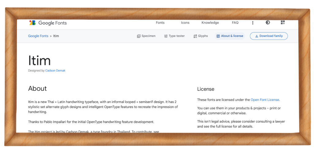 ขอบคุณฟอนต์ Item จาก Google Fonts