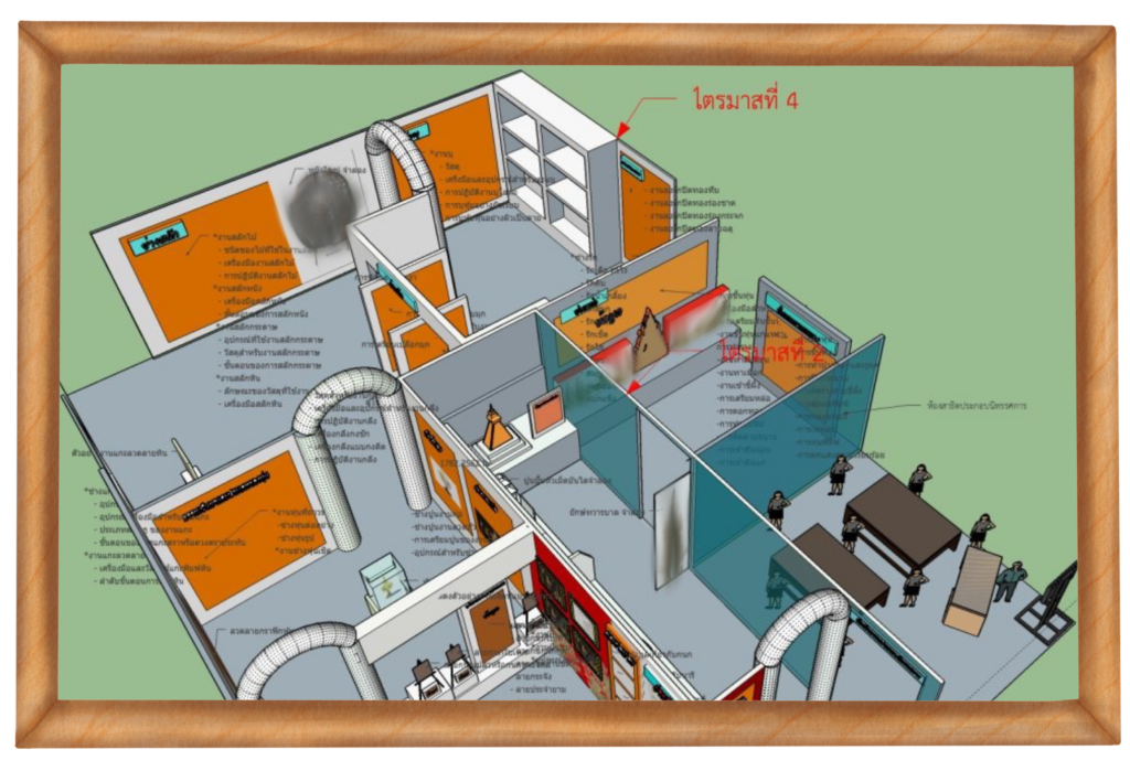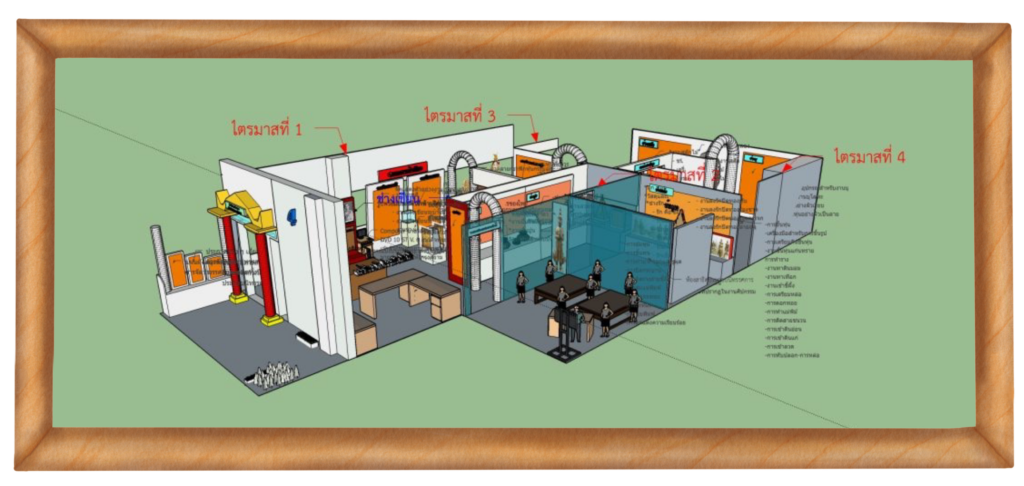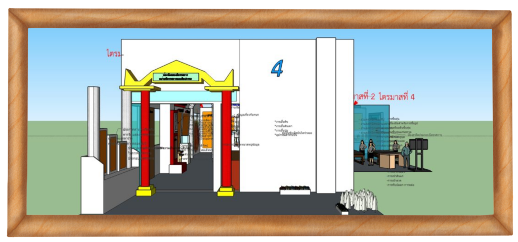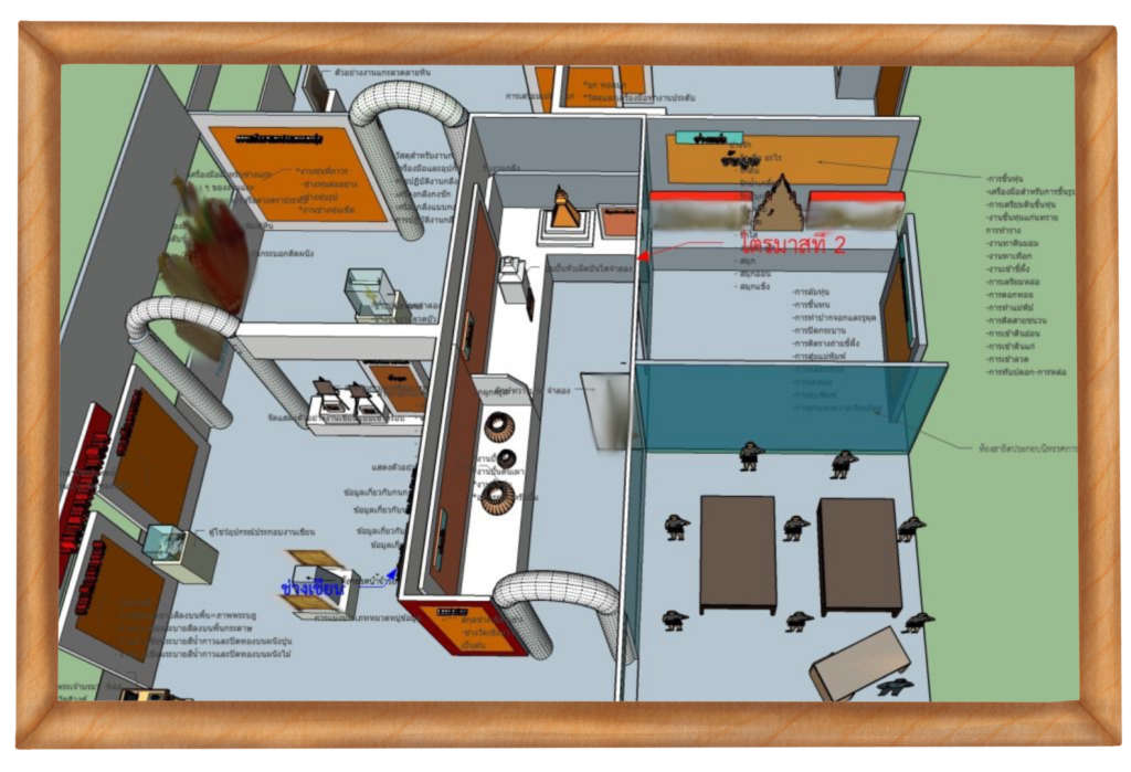 ภาพตัวอย่างการวางแผนการจัดนิทรรศการ”ช่างสิปปะ เส้นทางสายวัฒนธรรม” ด้วยโปรแกรม Google SketchUp for Free ในปี พ.ศ. 2558