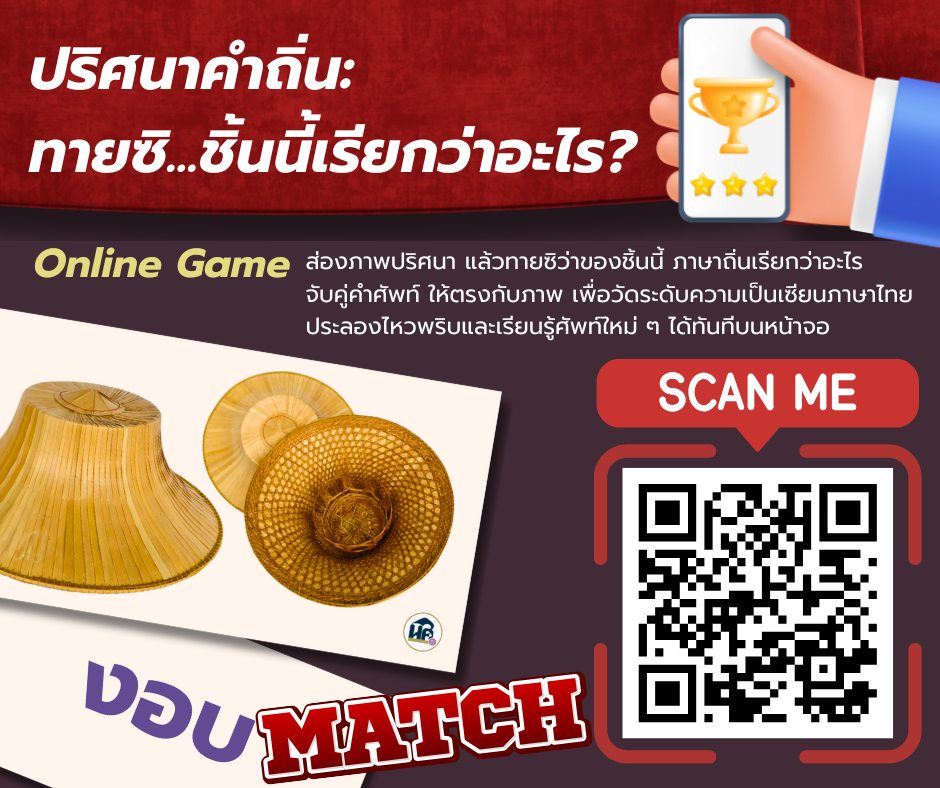 ส่องภาพปริศนา แล้วทายซิว่าของชิ้นนี้ ภาษาถิ่นเรียกว่าอะไร จับคู่คำศัพท์ ให้ตรงกับภาพ เพื่อวัดระดับความเป็นเซียนภาษาไทย ประลองไหวพริบและเรียนรู้ศัพท์ใหม่ ๆ ได้ทันทีบนหน้าจอ