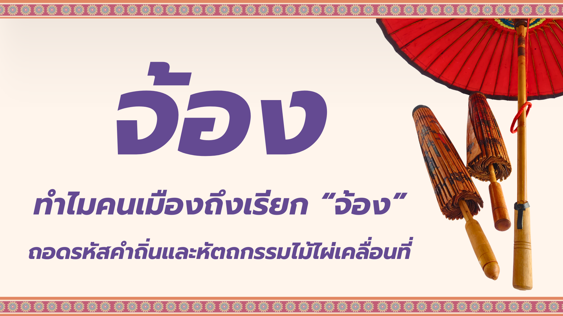 “จ้อง” คืออะไร แล้วทำไมไม่เรียกว่า “ร่ม” มาไขความลับโครงสร้างไม้ไผ่สุดเจ๋ง ภูมิปัญญาของสล่าล้านนา ที่ซ่อนเรื่องราววิถีชีวิตและวัฒนธรรมไว้อย่างน่าทึ่ง …[อ่านต่อ]