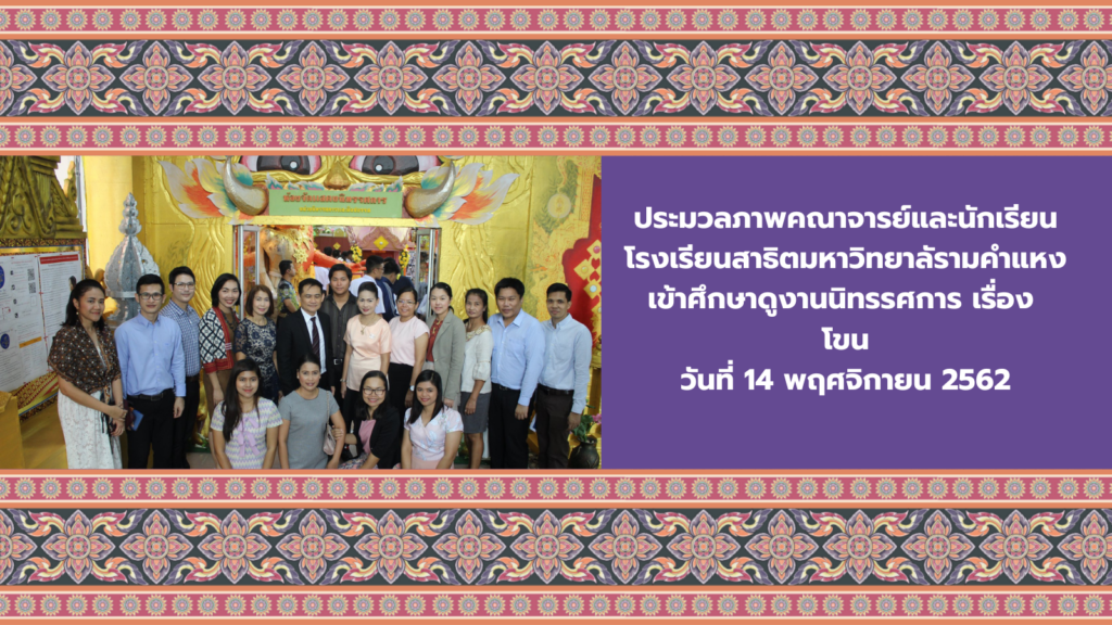 ประมวลภาพคณาจารย์และนักเรียนโรงเรียนสาธิตมหาวิทยาลัรามคำแหง (ฝ่ายมัธยม) เข้าศึกษาดูงานนิทรรศการ เรื่อง โขน (14 พฤศจิกายน 2562)