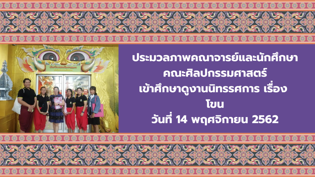 ประมวลภาพคณาจารย์และนักศึกษา คณะศิลปกรรมศาสตร์ เข้าศึกษาดูงานนิทรรศการ เรื่อง โขน (14 พฤศจิกายน 2562)