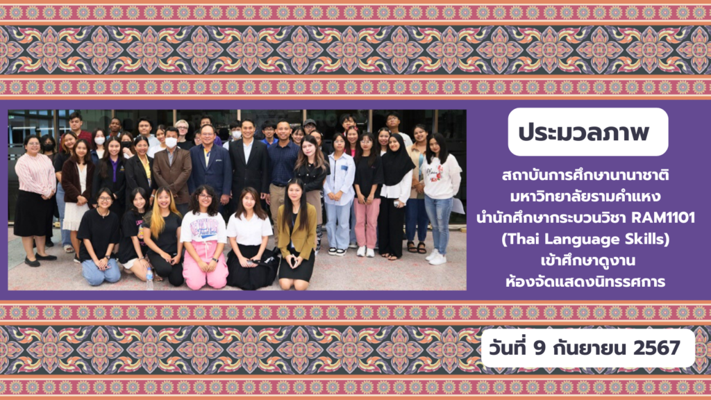 สถาบันการศึกษานานาชาติ มหาวิทยาลัยรามคำแหง นำนักศึกษากระบวนวิชา RAM1101 (Thai Language Skills) เข้าศึกษาดูงานห้องจัดแสดงนิทรรศการ