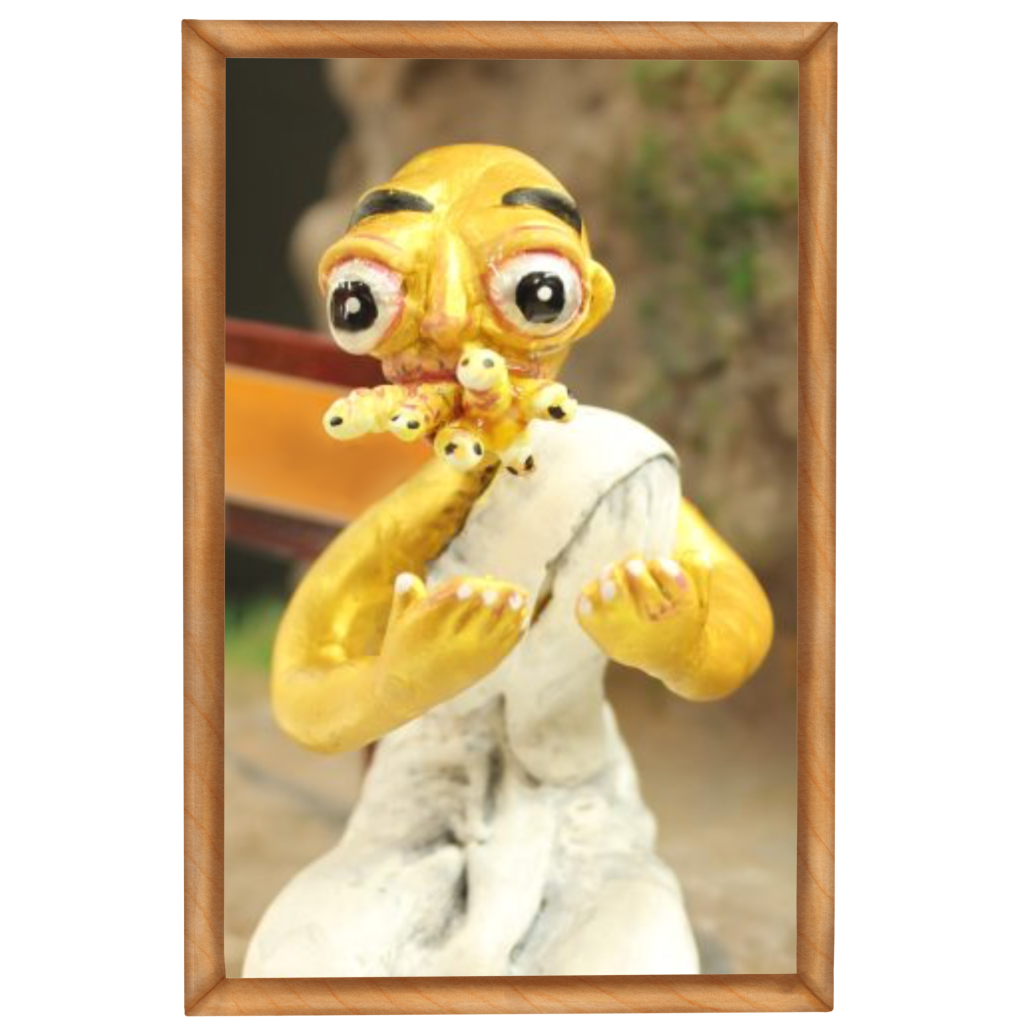 ซึ่งหุ่นจำลองเปรตปากหนอนชิ้นนี้ ผลิตขึ้นมาด้วยวัสดุเหลือใช้ในอัตราร้อยละ 85 เพื่อเป็นการลดปริมาณขยะ อนุรักษ์สิ่งแวดล้อม และสามารถประหยัดงบประมาณได้ ด้วยวิธี Upcycle ดำเนินการออกแบบหุ่นจำลองโดยนายกฤษดา เรืองสถาน นักวิชาการโสตทัศนศึกษาชำนาญการ ซึ่งนำศิลปะไทยเป็นแนวทางหลักเนื่องจากเป็นวรรณคดีไทย โดยให้หุ่นจำลองมีสีผิวเป็นสีทองผุดผ่องสะท้อนถึงการมีผิวกายที่งดงาม ให้นุ่งขาวห่มขาวเพื่อสะท้อนถึงการเป็นผู้รักษาศีล แต่ให้มีหนอนผุดออกมาจากปาก ตามข้อมูลที่ได้ศึกษา ค้นคว้ามา และมีการปรับประยุกต์รูปแบบการ์ตูนเข้าไปในชิ้นงานด้วย เพื่อให้เกิดการเข้าถึงและเข้าใจที่ง่ายมากยิ่งขึ้นได้ในกลุ่มผู้เรียน ซึ่งจากสถิติการเข้าใช้บริการกลุ่มผู้เรียนมีช่วงอายุอยู่ระหว่าง 18 – 25 ปี โดยประมาณ อีกทั้งเพื่อลดทอนความน่ากลัวจากเนื้อหาให้ดูน่าสนใจดึงดูดการอยากเรียนรู้ที่มากขึ้น ตามที่แสดงในภาพ