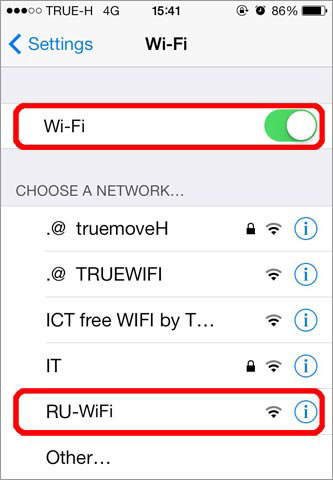 3. เปิดการทำงานของ wifi ให้เป็น "ON" แล้วเลือกเครือข่าย